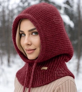 Komin z kapturem damski, kominiarka/kaptur zimowy wełniany, Ruanna, bordowy, 55-60 cm