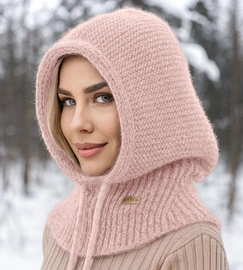 Kaptur damski, kominiarka damska, komin z kapturem, Valdia, brudny róż, 54-60 cm