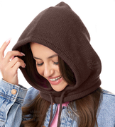 Komin z kapturem damski, kominiarka/kaptur zimowy wełniany, Ruanna, brązowy, 55-60 cm