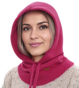 Kominiarka damska, kaptur zimowy, merino 17%, Beliza, ciemny róż, 55-62 cm