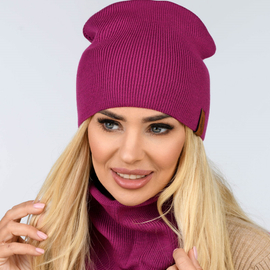 Czapka i komin damski, komplet wiosenny-jesienny, Mirandi, róż amarant, 55-57 cm
