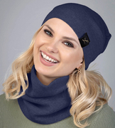 Dzianinowa czapka i komin damski, prążek, granat, Nobia rozm. 54-57 cm