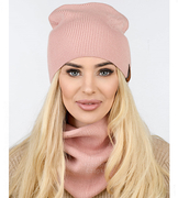 Czapka i komin damski, komplet wiosenny-jesienny, Carmelia, róż pudrowy, 55-60 cm