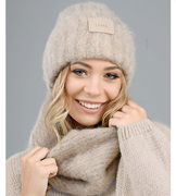 Ekskluzywny komplet damski wełniany, czapka i szal, Viveka, beżowy ciemny (2), 54-56 cm