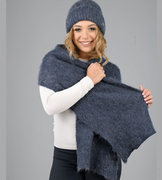 Ekskluzywny komplet wełniany, czapka i szal damski, Viveka, szary (G), 54-56 cm