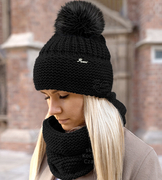 Czapka z pomponem i komin damski zimowy, Mauricia, czarny (06), rozm. 55-57 cm