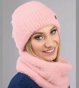 Komplet zimowy damski, czapka i komin, Lakiana, róż blady, 56-59 cm