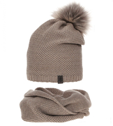 Komplet zimowy damski, czapka i komin, Lakiana, beżowy ciemny, 56-59 cm