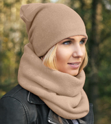 Zimowa czapka i komin, damski komplet Mauricia, beżowy + biały melanż, 55-57 cm