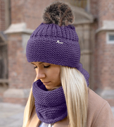 Damska czapka i komin zimowy, z pomponem, Mauricia fioletowy, rozm. 55-57 cm