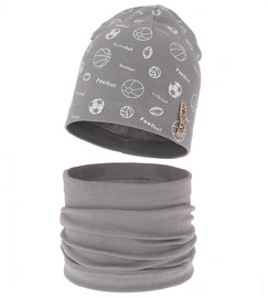 Czapka i komin dla chłopca, komplet wiosenny/jesienny, Loapo, szary, 52-54 cm
