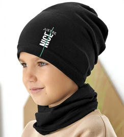 Czapka i komin dla chłopca, komplet wiosenny, czarny, BeNice, 52-54 cm