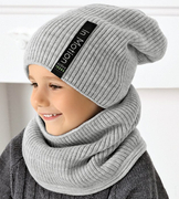 Czapka i komin dla chłopca, komplet, Dinesh, dwustronny, szary, 54-60 cm