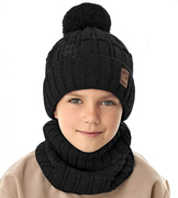 Czapka i komin, dla chłopca, zimowy komplet, Carmos, czarny, 48-52 cm