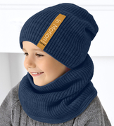 Komplet zimowy dla chłopca: czapka i komin, Moreo, granatowy, 54-59 cm