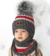 Czapka i komin, dla chłpczyka, komplet zimowy, Mishka, szary, 46-49 cm