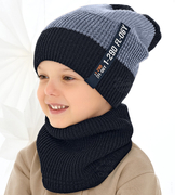 Zimowa czapka i komin dla chłopca, Devin, granatowy + zielony, 46-50 cm