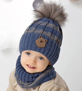 Zimowa czapka dla chłopczyka z futerkowym pomponem i komin, Conny rozm. 46-50 cm