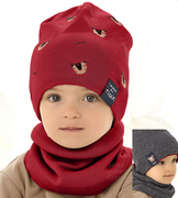 Czapka i komin dla chłopca, merino 50%, Nabasco, kamel,50-52 cm