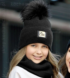 Czarna czapka i szalik dla nastolatki Komplet Chance Coco rozm. 55-58