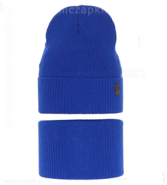 Komplet dzianinowy młodzieżowy prążkowany: czapka i komin, Gradon, rozm. 46-50 cm