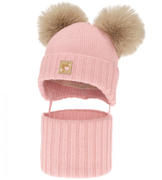 Czapka i komin dla dziewczynki, komplet zimowy, Lussy, jasny róż, 50-52 cm