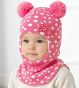 Kominiarka zimowa z dwoma pomponami dla dziewczynki, Gizelda, ciemny róż, 49-53 cm