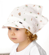 Muślinowa czapka/chustka z daszkiem, dla dziewczynki, biała, Lanila, 44-47 cm