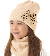 Czapka i komin dla dziewczynki, komplet zimowy, Millva, jasny beżowy, 54-56 cm