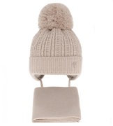 Czapka z dwoma pompoanmi i komin dla dziewczynki na zimę, Merlina, beżowy, 47-50 cm