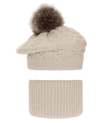 Beret i komin dla dziewczynki, komplet zimowy, Fokki, beżowy, 52-55 cm