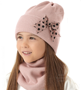 Czapka zimowa i komin dla dziewczynki, Lovilet, brudny róż, 52-56 cm