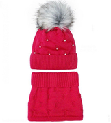 Zimowa czapka i komin, dwa pompony, komplet dla dziewczynki, Juana rozm. 50-54 cm