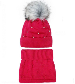 Czapka zimowa i komin dla dziewczynki, Shanley, malinowy, 46-48 cm