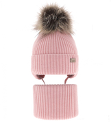 Czapka i komin dla dziewczynki, komplet zimowy, brudny róż, Niessa, 44-46 cm