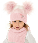Czapka zimowa i golf, dwa pompony, różowy, Apolonia, 50-54 cm