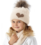 Komplet zimowy dla dziewczynki: czapka i szalik, Elwira, beżowy, 52-56 cm