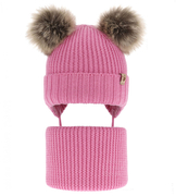Czapka zimowa i komin z wełny merino, dla dziewczynki, różowy (2), Lisvia, 50-52 cm