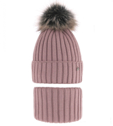 Zimowa czapka i komin dla dziewczyny, Wilma, róż wrzosowy, 52-56 cm