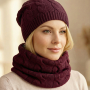 ( ilość produktów: 910 )Komplet czapka i komin damski z wełny merino i kaszmiru, Likana, bordowy, 55-57 cm