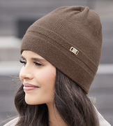 Czapka damska z wełny merino i kaszmiru, jesienna/zimowa, Elitana, kakaowa, 54-56 cm