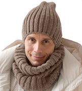 Komplet zimowy męski, czapka i komin, Iglesias, beżowy, 57-60 cm
