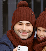 Modna czapka i komin zimowy męski, Peder, miedziany, 56-60 cm