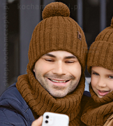 ( ilość produktów: 38 )Modna czapka i komin zimowy męski, Peder, karmelowy, 56-60 cm