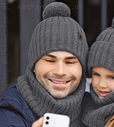 Modna czapka i komin zimowy męski, Peder, ciemny szary, 56-60 cm