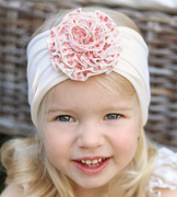 Opaska dla dziewczynki, turban, różowa (3), 3633, z kwiatem, obw. 45-47 cm