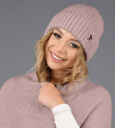 Modna czapka damska zimowa czapka alpakowa, prążkowana, Lotten, brudny róż, 54-57 cm
