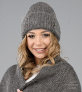 Czapka zimowa, damska, Izydora, angora, czarna, 54-56 cm