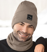 Czapka i komin zimowy, męski komplet, Tabbaco, fango, 56-60 cm