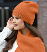 ( ilość produktów: 745 )Ekskluzywny komplet wełniany, czapka i szal damski, Viveka, pomarańczowy, 54-56 cm